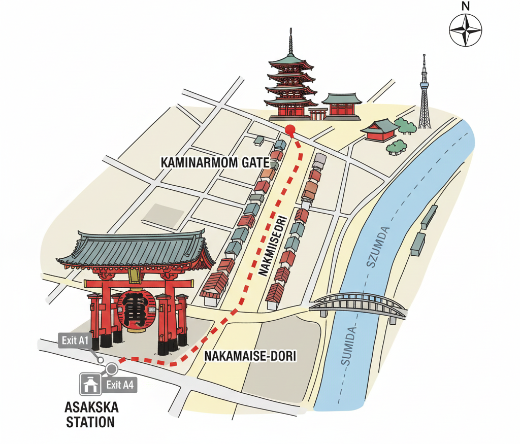 [Image Suggestion: Vibrant shot of Nakamise Street with colorful shop fronts and visitors browsing]