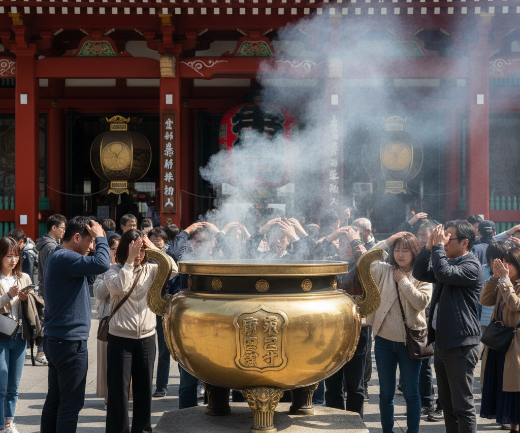 Purify Yourself with Incense: At the large incense burner (Jokoro) in front of the hall, waft smoke over yourself. It's believed to heal ailments and bring good health.